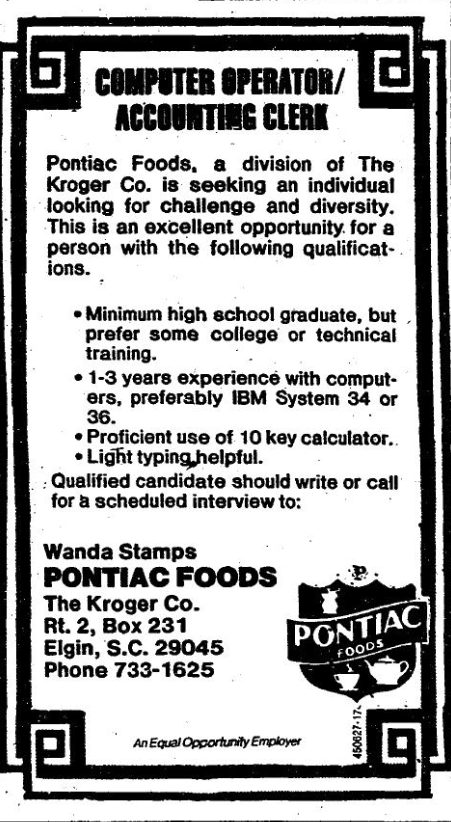 • 1-3 years experience with computers, preferably IBM System 34 or 36.