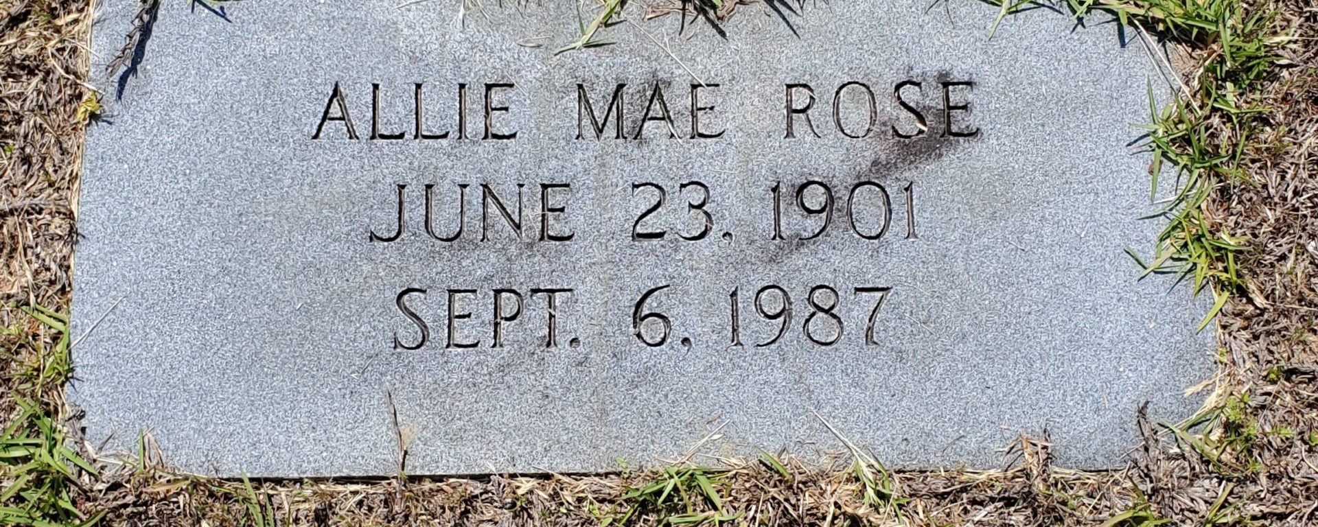 On January 10, 1927, Miss Allie Rose was listed as a living sister in the obituary of “Mamie I Rose Ross.”