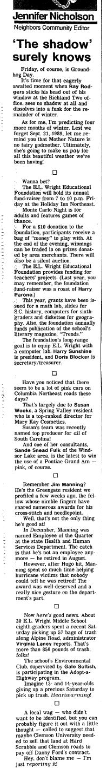 Heard — or made up — any good jokes lately? Jennifer Nicholson, your community editor would like to hear them. Maybe they’ll wind up in print! You can reach her at 771-8507 or toll-free from Lugoff-Elgin, 1-800-922-3448. Or write c/o The State, P.O. Box 1333, Columbia 29202.