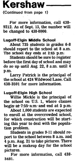 The school is at 1621 Smyrna Road in Elgin. The last day for registration is Aug. 22, 8 a.m. until 3:30 p.m. For more information, call 438-3241.