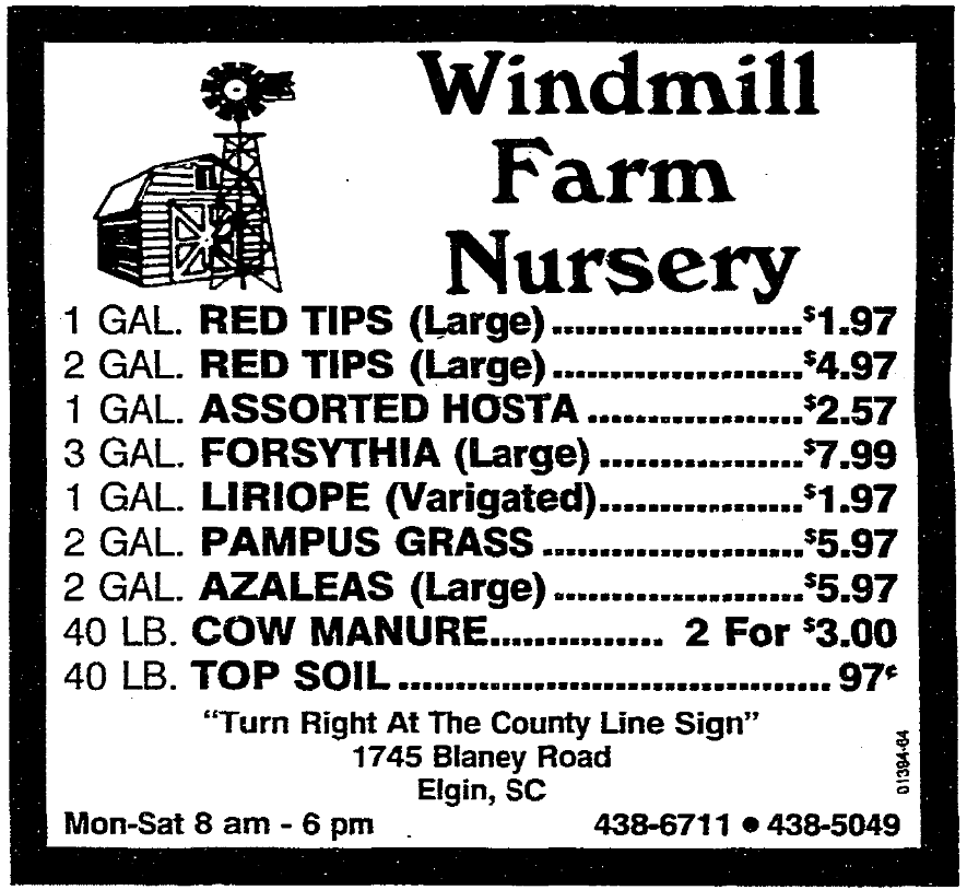 40 LB COW MANURE . . . . . . . . . . . . 2 For $3.00