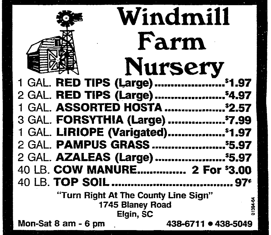 40 LB COW MANURE . . . . . . . . . . . . 2 For $3.00