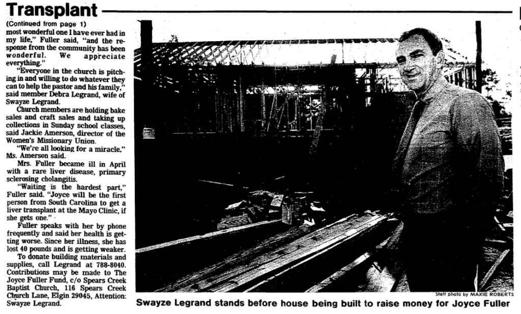 “Waiting is the hardest part,” Fuller said. “Joyce will be the first person from South Carolina to get a liver transplant at the Mayo Clinic, if she gets one.”