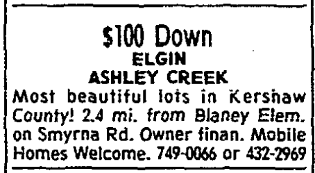 Most beautiful lots in Elgin Area. Paved Roads. Mobilehome approved. 1-11 acre tracts, Smyrna Rd. 2.4 mi. from Blaney Elem. Excellent owner financing. 749-0066 or 432-2969.