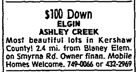 Most beautiful lots in Elgin Area. Paved Roads. Mobilehome approved. 1-11 acre tracts, Smyrna Rd. 2.4 mi. from Blaney Elem. Excellent owner financing. 749-0066 or 432-2969.