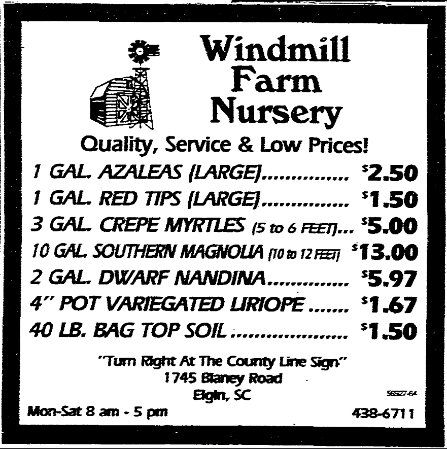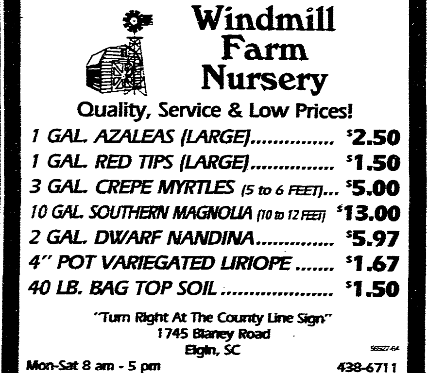 3 GAL. CREPE MYRTLES (5 to 6 FEET) . . . . . . . . . $5.00