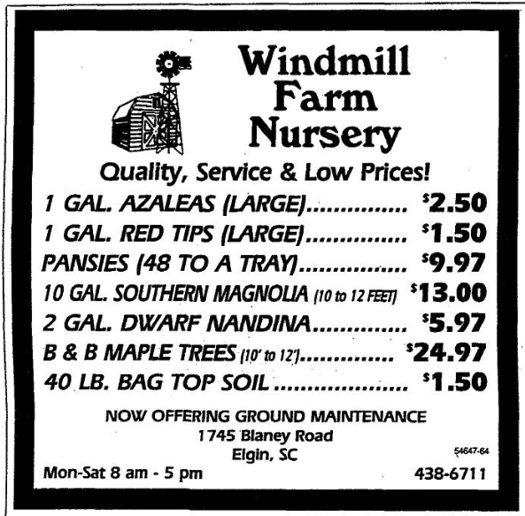10 GAL. SOUTHERN MAGNOLIA (10 to 12 FEET)……………$13.00