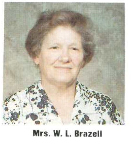 On January 15, 1976, Mrs. Martha Sue Johnson Brazell was listed as the living wife in the obituary of Wylie Lewis Brazell.
