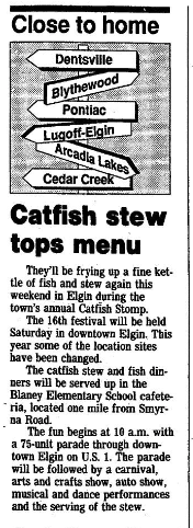 They’ll be frying up a fine kettle of fish and stew again this weekend in Elgin during the town’s annual Catfish Stomp.
