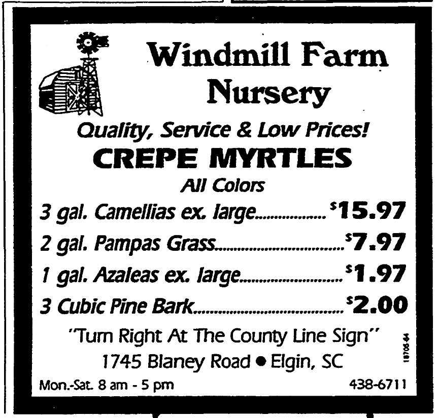 3 Cubic Pine Bark . . . . . . . . . $2.00