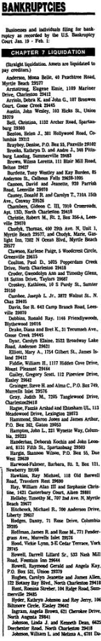 Businesses and individuals filing for bankruptcy as recorded by the US. Bankruptcy Court Jan. 19 – Feb. 1: