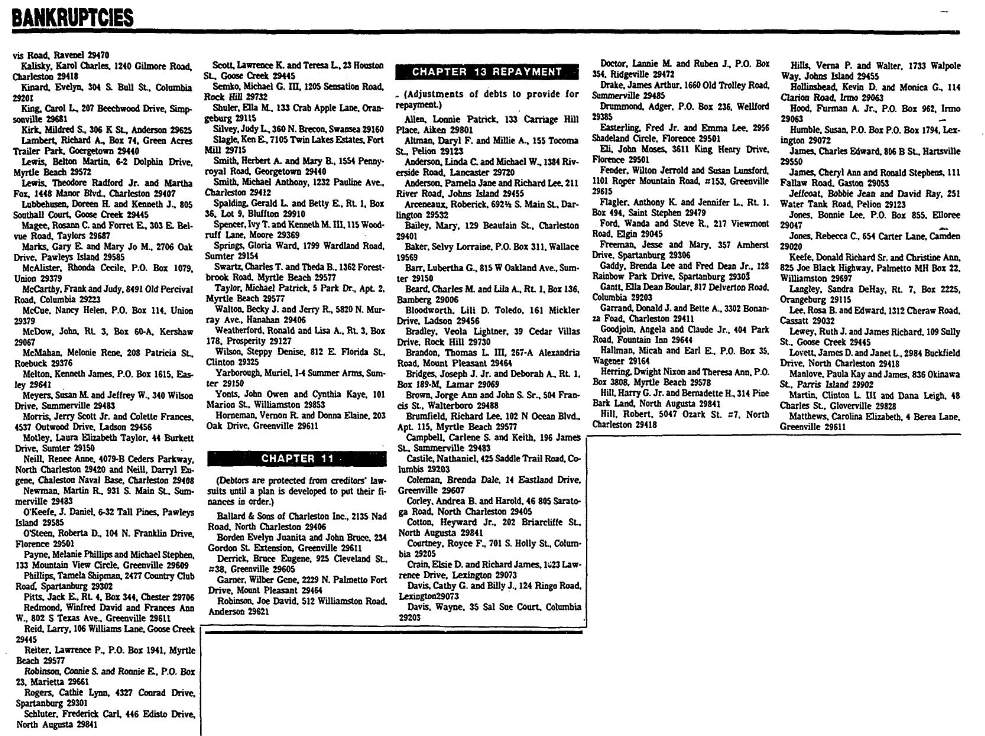 Businesses and individuals filing for bankruptcy as recorded by the US. Bankruptcy Court Jan. 19 – Feb. 1: