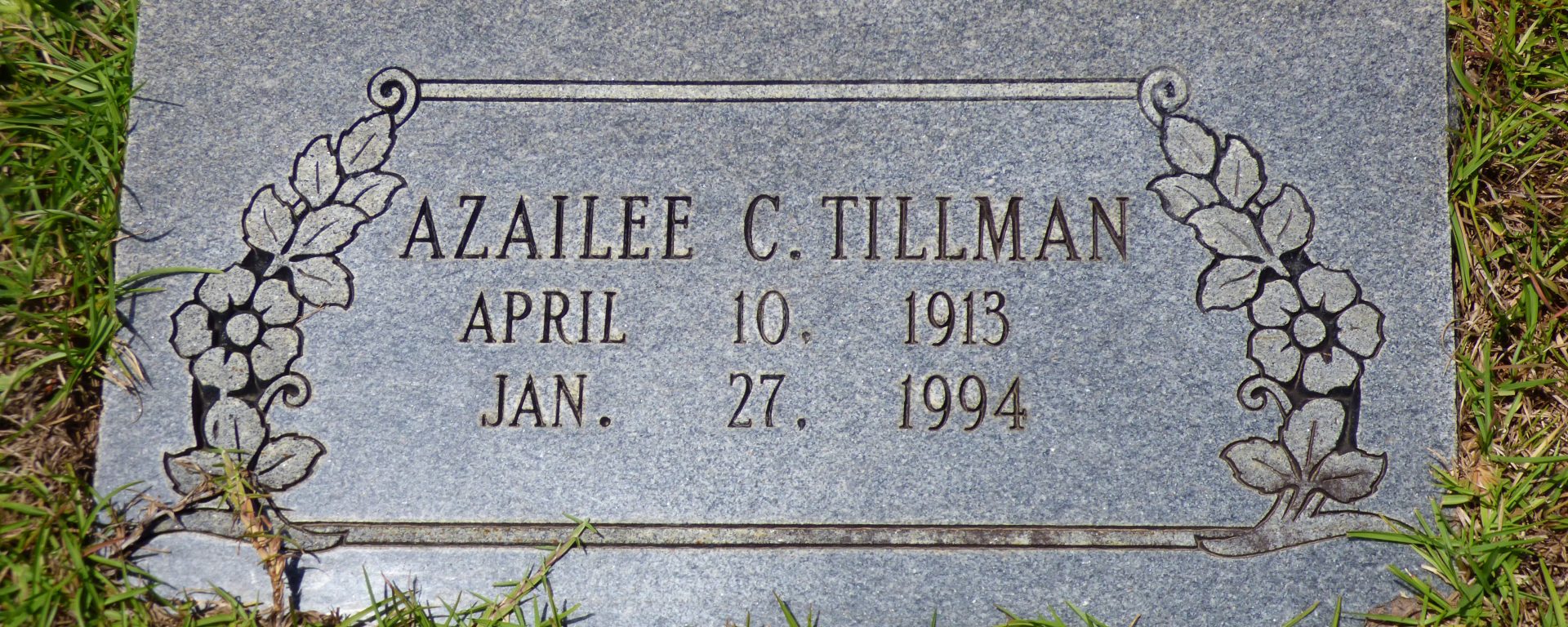 She died on 27 Jan 1994 in Camden, Kershaw, South Carolina, USA. Azailee Cook was buried on 31 Jan 1994 in Camden, Kershaw, South Carolina, USA at Cedars Cemetery