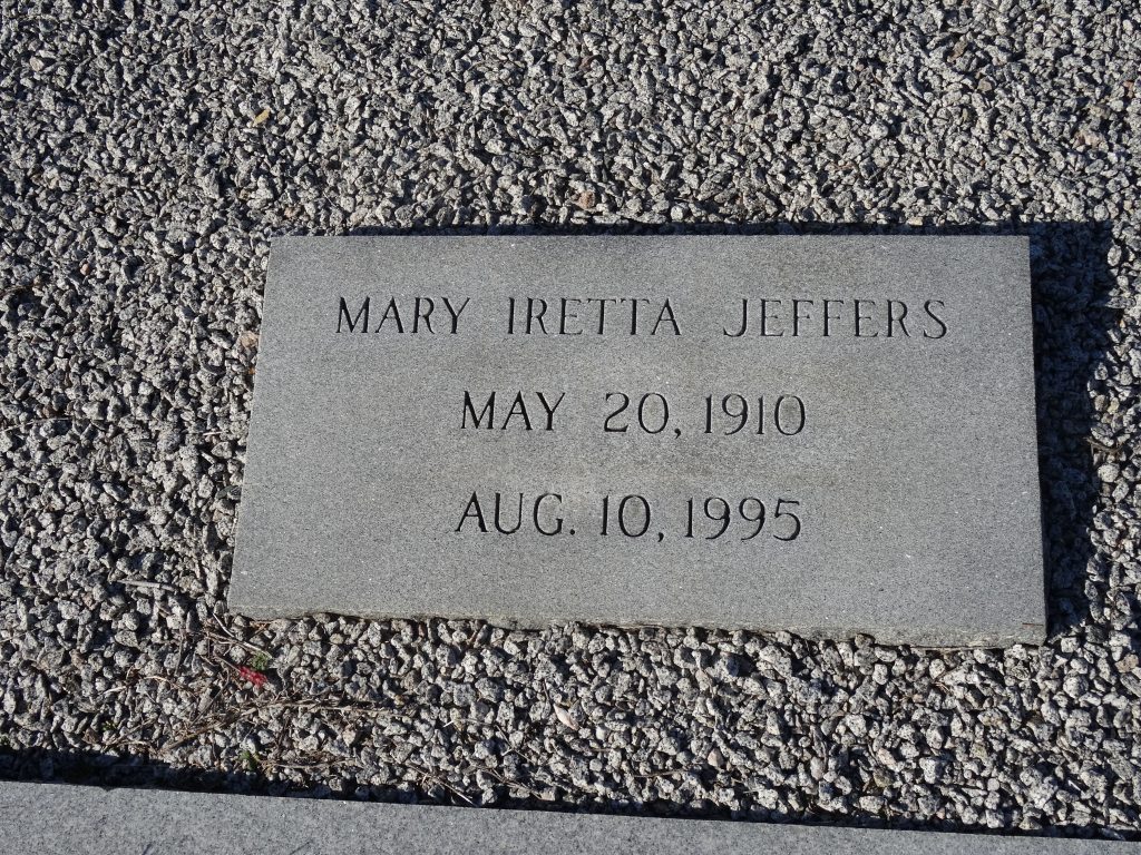 Mary Iretta Goff Jeffers was born on 20 May 1910 in Elgin, Kershaw, South Carolina, USA a child of Jesse Lee Goff and Henrietta Branham Goff.