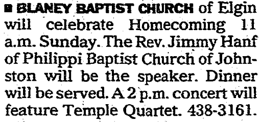 1943 Ralph Dennis Heath was born March 6, 1943 in Blaney, South Carolina, a son of Malcolm Heath and Ruth Bowen Heath Goff. 1995 ELGIN – Services for Ralph Dennis Heath, 52, of 2332 Miles Road will be held at 11 a.m. Saturday at Highway Pentecostal Holiness Church. Visitation will be from 6 to 8 tonight at Talbert-Shives Funeral Home. Memorials may be made to … Continue reading Ralph Dennis Heath