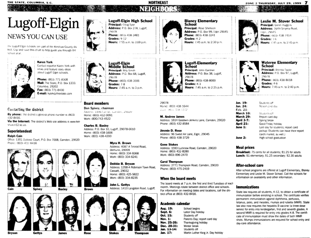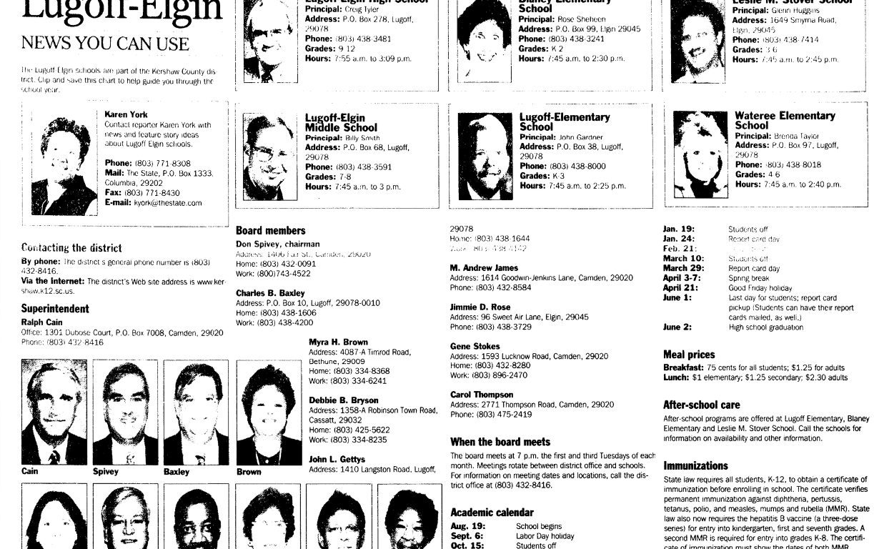 The Lugoff Elgin Schools are part of the Kershaw County district. Clip and save this chart to help guide you through the school year.