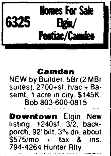 Downtown Elgin New listing, 1240sf. 3/2, backporch, 92′ blt., 3% dn, about $575/mo + tax & ins. 794-4264 Hunter Rlty.