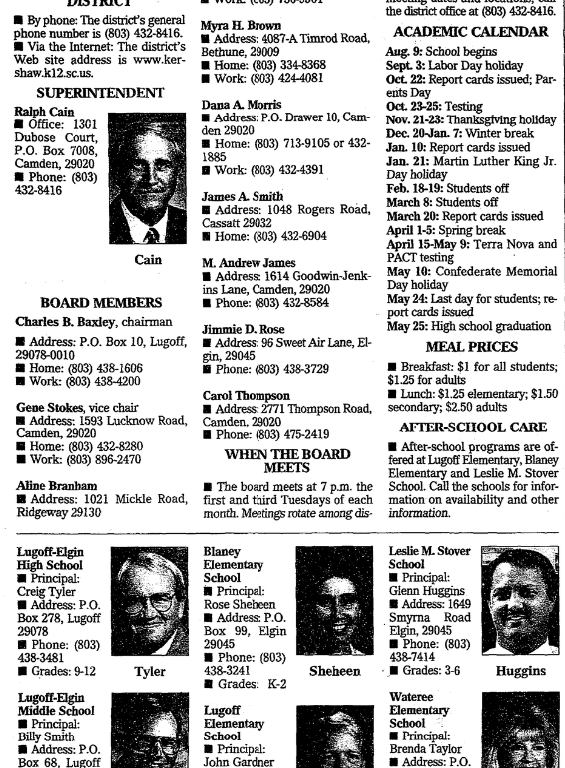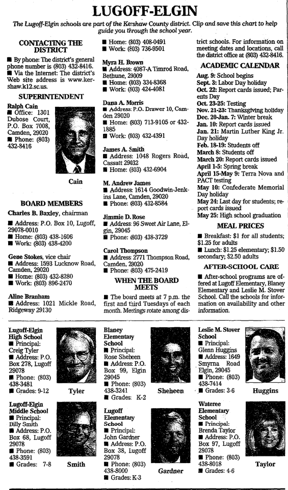 The Lugoff-Elgin schools are part of the Kershaw County district. Clip and save this chart to help guide you through the school year.