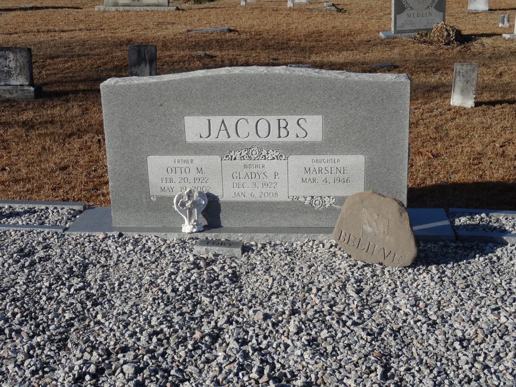 On November 3, 2014, Otto Jacobs was mentioned as a deceased brother in the obituary of Betty Earline Jacobs LeGrand.
