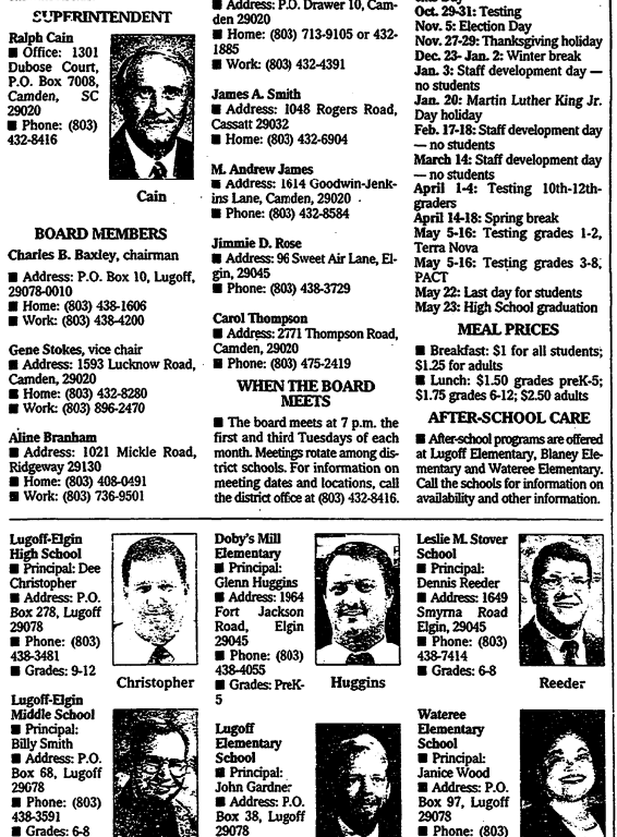 * After-school programs are offered at Lugoff Elementary, Blaney Elementary and Wateree Elementary. Call the schools for information on availability and other information.