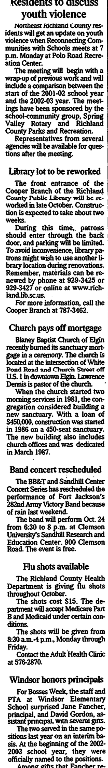 The meeting will begin with a wrap-up of previous work and will include a comparison between the start of the 2001-02 school year and the 2002-03 year. The meetings have been sponsored by the school-community group, Spring Valley Rotary and Richland County Parks and Recreation.