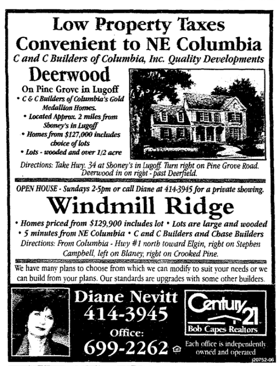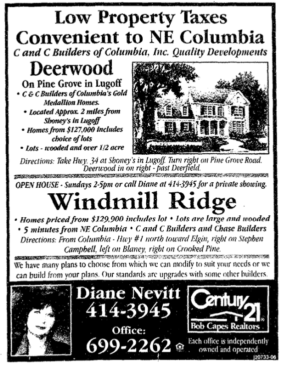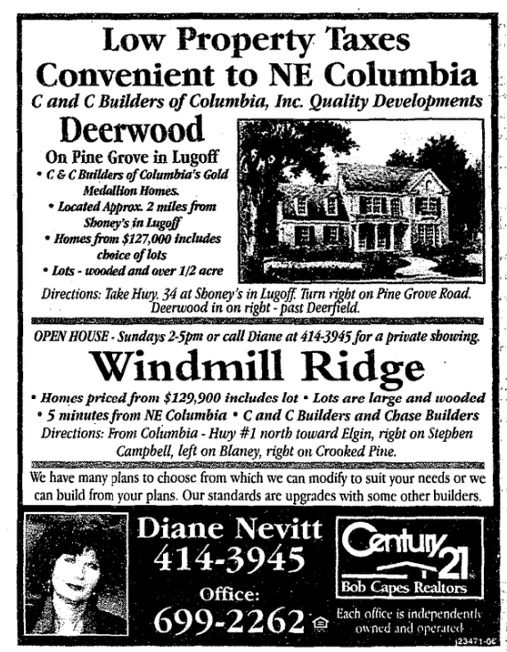 Convenient to NE Columbia C and C Builders of Columbia, Inc. Quality Developments Deerwood On Pine Grove in Lugoff C & C Builders of Columbia’s Gold Medallion Homes. Located Approx. 2 miles from Shoney’s in Lugoff Homes from $127,000 includes choice of lots Lots – wooded and over 1/2 acre Directions; Take Hwy. 34 at Shoney’s in Lugoff. Turn right on Pine Grove Road. Deerwood … Continue reading Low Property Taxes