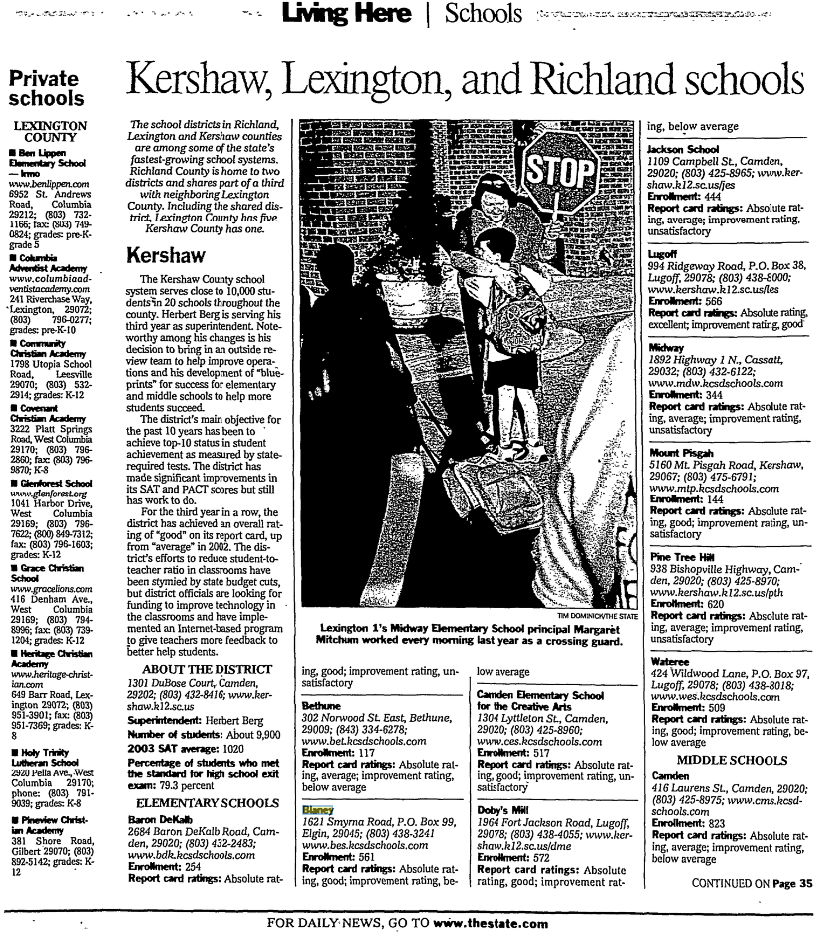 The Kershaw County school system serves close to 10,000 students in 20 schools throughout the county. Herbert Berg is serving his third year as superintendent. Noteworthy among his changes is his decision to bring in an outside review team to help improve operations and his development of “blueprints” for success for elementary and middle schools to help more students succeed.