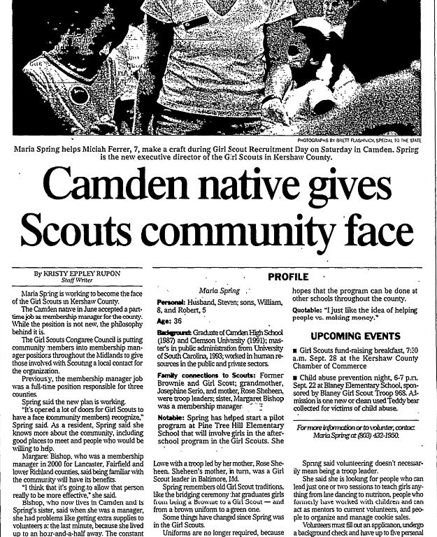 Maria Spring is working to become the face of the Girl Scouts in Kershaw County.