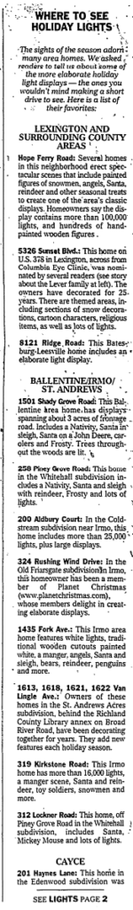 201 Haynes Lane: This home in the Edenwood subdivision was noted for its elaborate light decorations – more than 21,000.