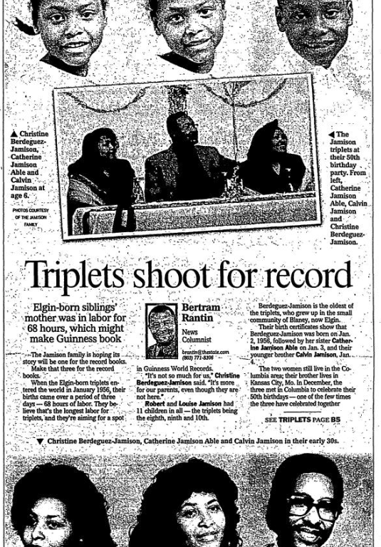 When the Elgin-born triplets entered the world in January 1956, their births came over a period of three days – 68 hours of labor. They believe that’s the longest labor for triplets, and they’re aiming for a spot in Guinness World Records.