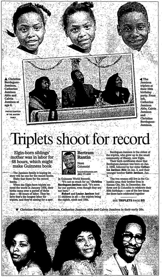 Their birth certificates show that Berdeguez-Jamison was born on Jan. 2, 1956, followed by her sister Catherine Jamison Able on Jan. 3, and their younger brother Calvin Jamison, Jan. 4.