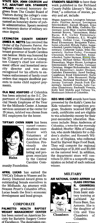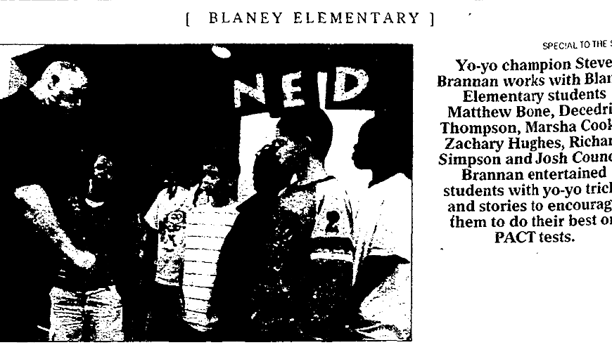 SPECIAL TO THE STATE First-grade students, JeDarius, left, Jasmyn Richardson, and Meghan Semino react to a cold water of a wet sponge from Kahmeel Cooke, right during a water relay race at Blaney Elementary recently. The class who filled the bucket first was the winner. Blaney Elementary second-graders Andrew Place, Jonathan Bagwell, Sera Nicols, Tiffany Boyles, Hanna Campbell and Dylan Rogers watch Sheriff Steve McCaskill flip burgers on … Continue reading BLANEY ELEMENTARY