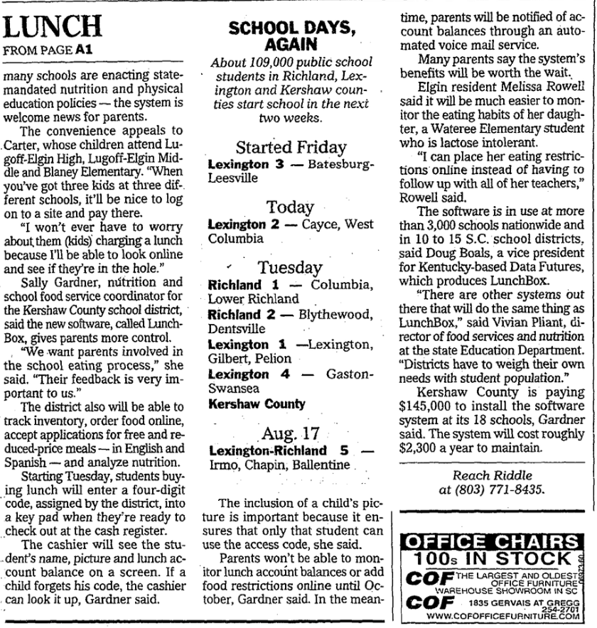 Sally Gardner, nutrition and school food service coordinator for the Kershaw County school district, said the new software, called LunchBox, gives parents more control.