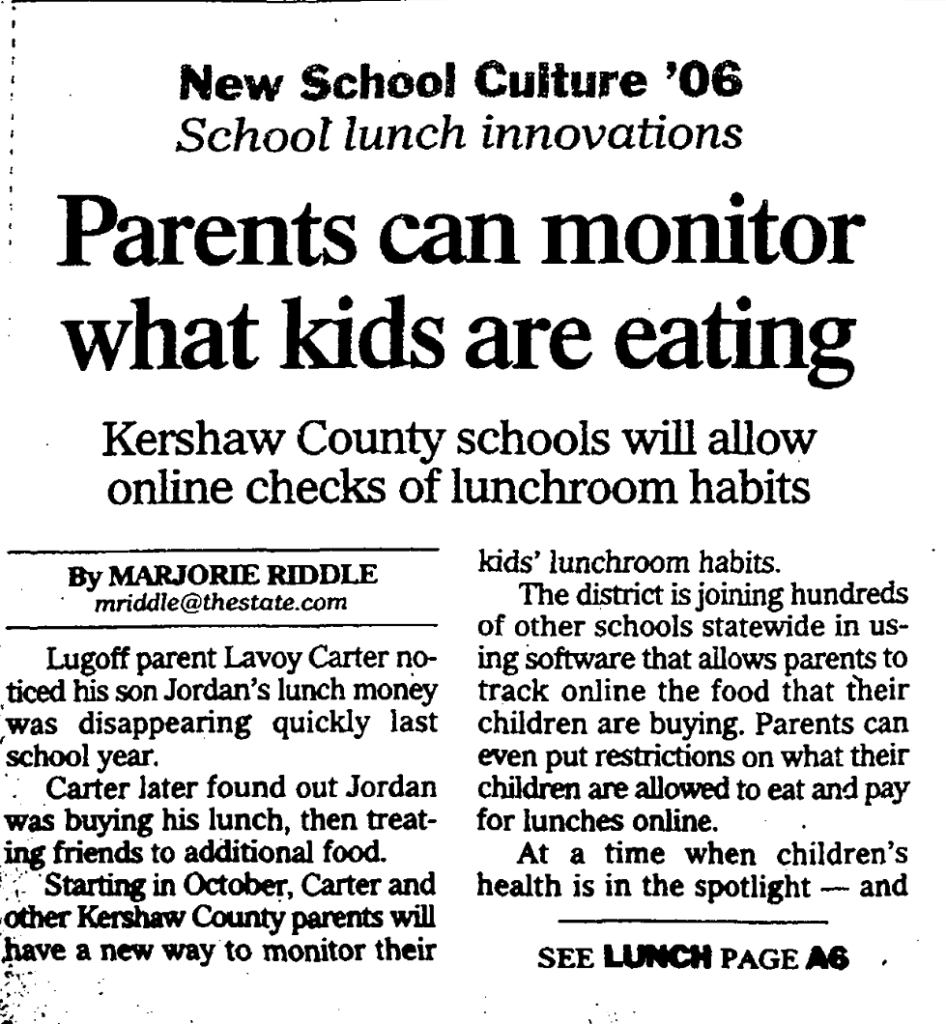 Starting in October, Carter and other Kershaw County parents will have a new way to monitor their kids’ lunchroom habits.