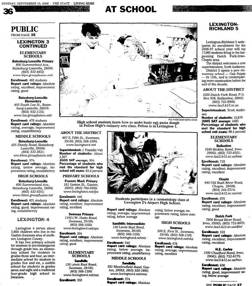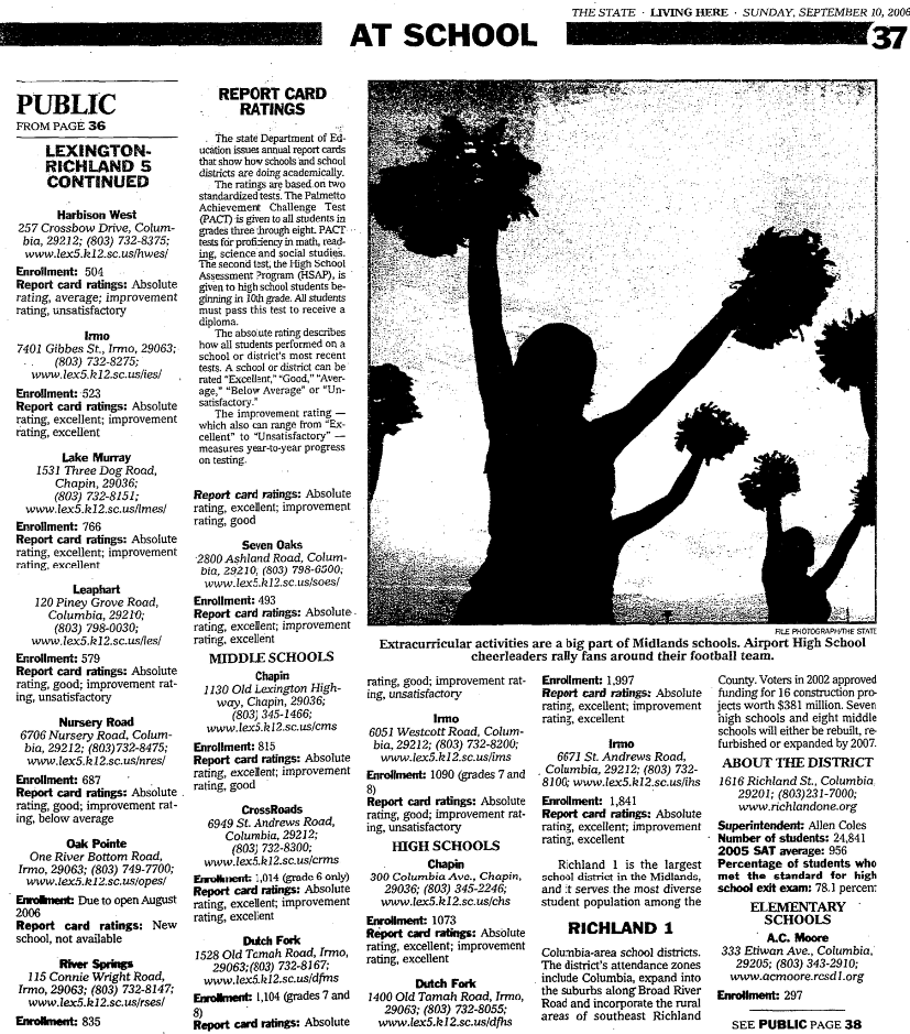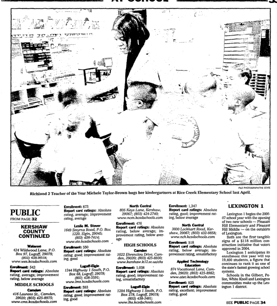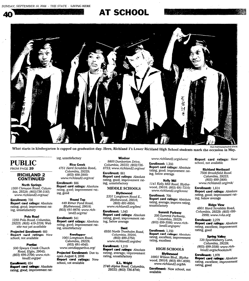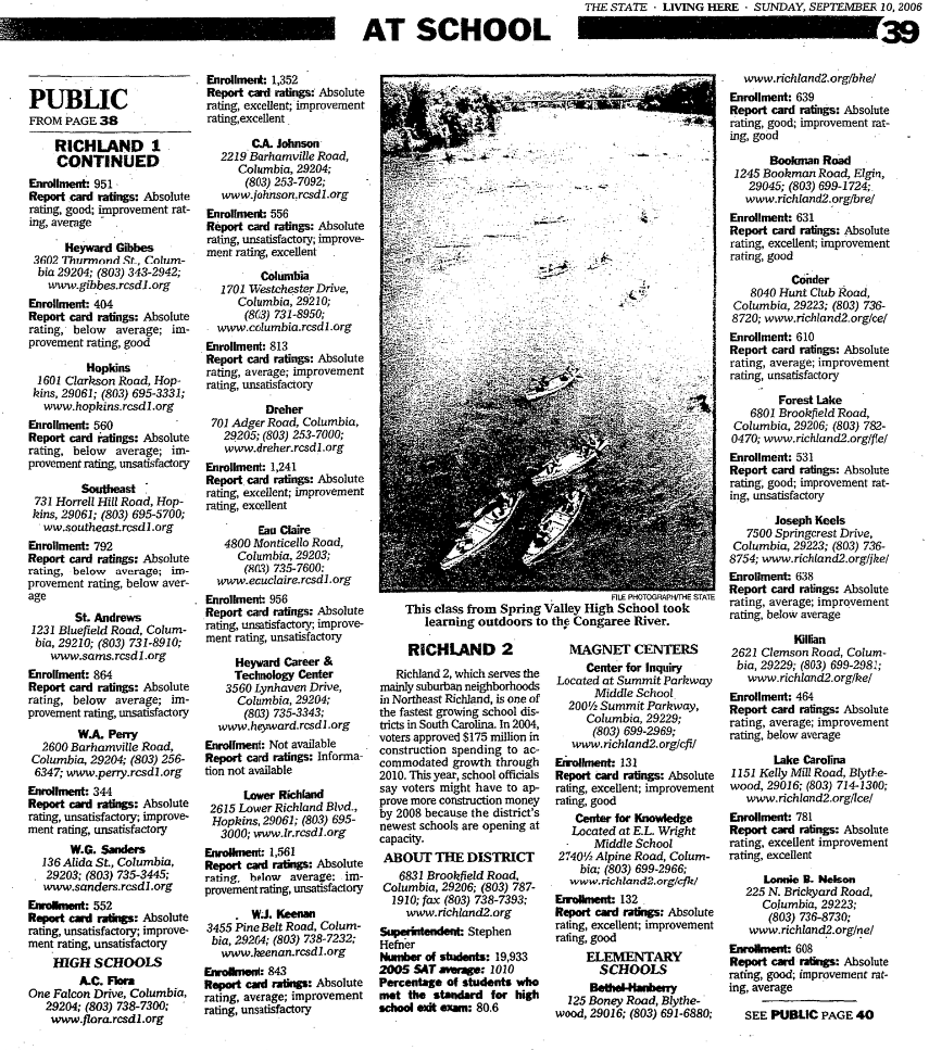 Richland 2, which serves the mainly suburban neighborhoods in Northeast Richland, is one of the fastest growing school districts in South Carolina. In 2004, voters approved $175 million in construction spending to accommodated growth through 2010. This year, school officials say voters might have to approve more construction money by 2008 because the district’s newest schools are opening at capacity.