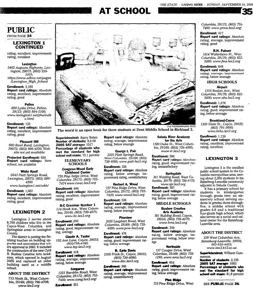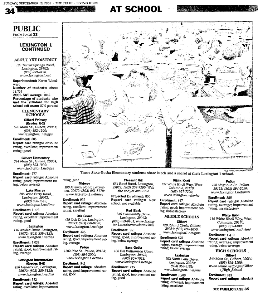 Schools in the Gilbert, Pelion, White Knoll and Lexington communities make up the Lexington 1 district.