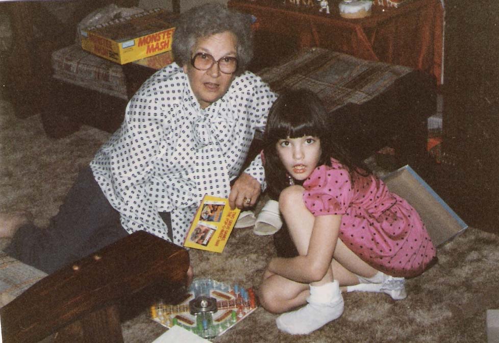 Granny was always down to play a game with her grandchildren, here she is playing trouble, with her granddaughter, Amanda Michelle Morgan.