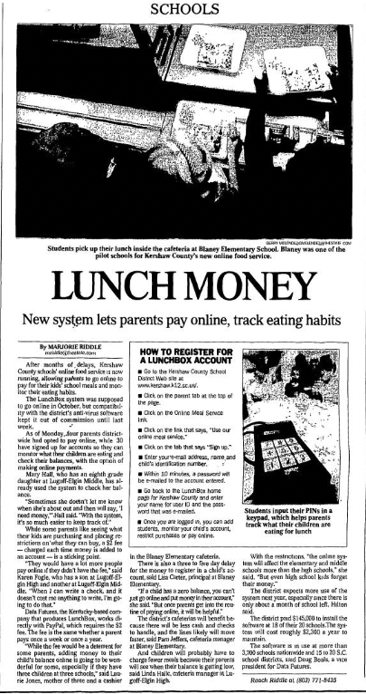 And children will probably have to charge fewer meals because their parents will see when their balance is getting low, said Linda Hall, cafeteria manager at Lugoff-Elgin High.