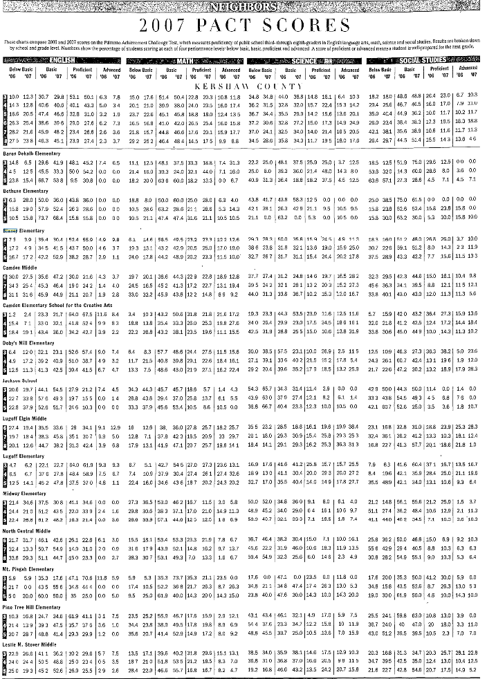 The Kershaw County School District had more kids meet the standard on the four portions of the PACT test in 20 out of 24 categories than the state average in 2007.
