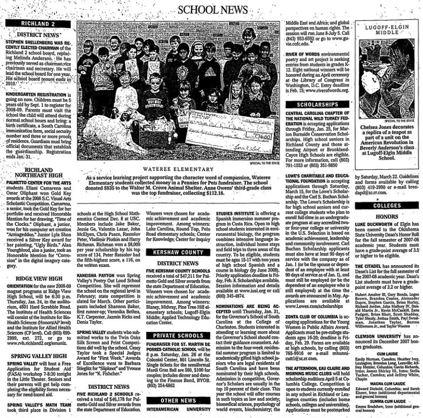 January 17, 2008  State (published as The State)  Columbia, South Carolina