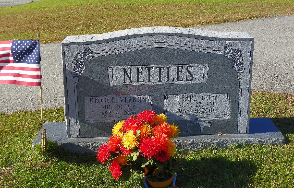 On May 21, 2006, George Vernon “Sarge” Nettles was listed as the living husband of Pearl Goff Nettles.
