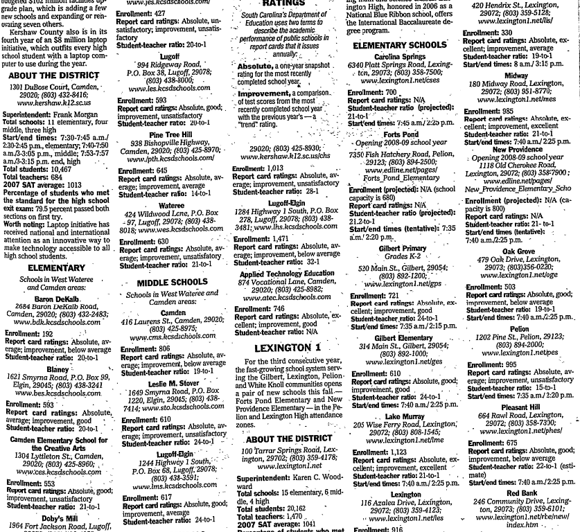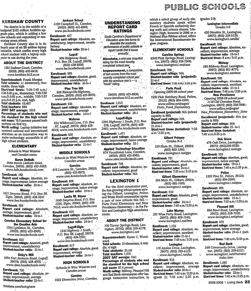 Schools in West Wateree and Camden areas: