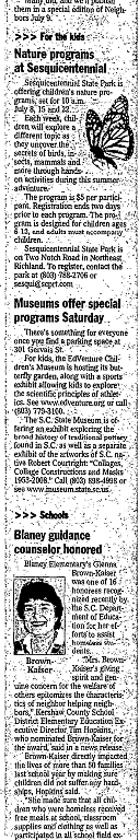 “Mrs. Brown-Kaiser’s giving spirit and genuine concern for the welfare of others epitomizes the characteristics of neighbor helping neighbors,” Kershaw County School District Elementary Education Executive Director Tim Hopkins, who nominated Brown-Kaiser for the award, said in a news release.