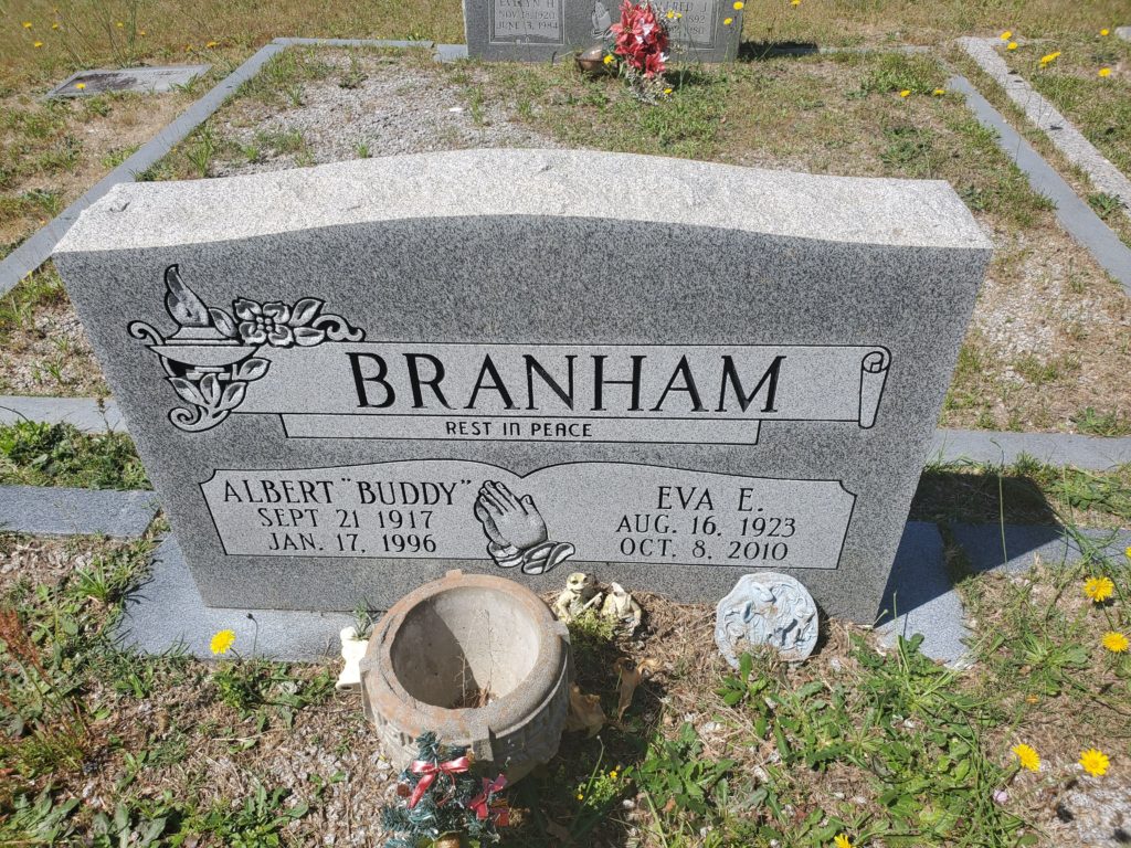 On October 2, 1962, Mrs. Eva Branham was listed in the newspaper article “Eight Hurt In Collision Near Camden.”