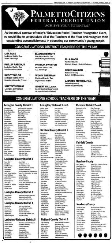 As the proud sponsor of today’s Teacher Recognition Breakfast, Palmetto Citizens would like to congratulate all of the Teachers of the Year and recognize their outstanding accomplishments in educating our community’s young people.