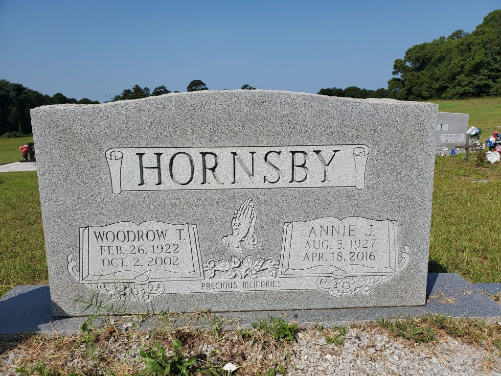On October 2, 2002, Annie Jackson Hornsby was mentioned as the living wife in the obituary of Woodrow T. Hornsby.