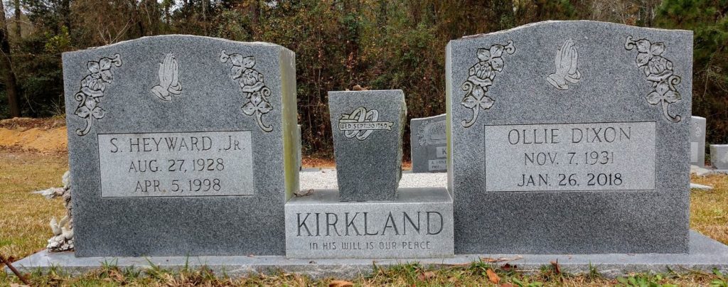 Ollie was predeceased by her husband, Sidney Heyward Kirkland, Jr., and three brothers.