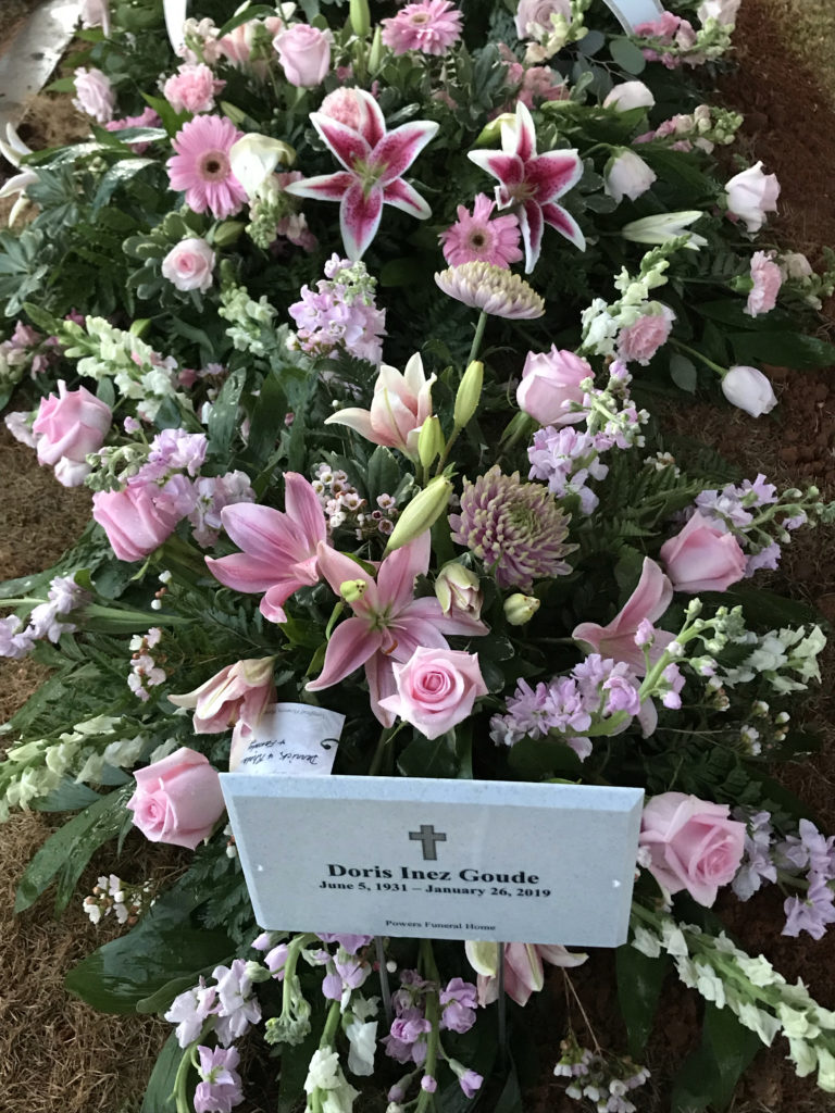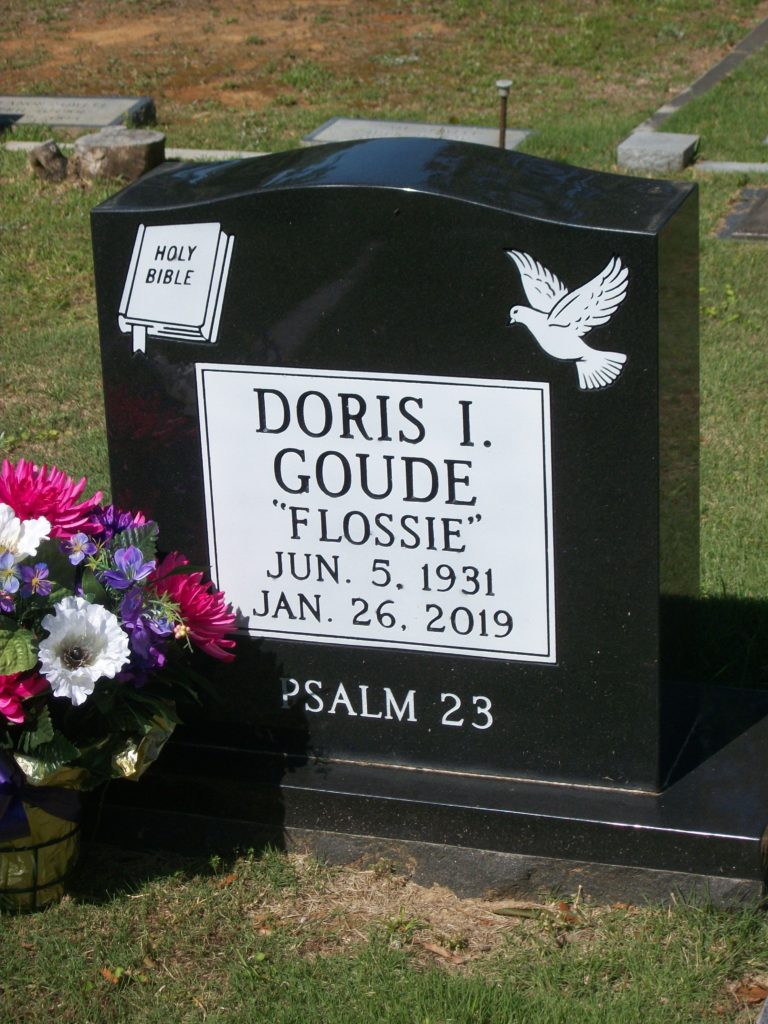 She died on 26 Jan 2019 in Lugoff, Kershaw, South Carolina, USA. Doris Inez “Flossie” Goude was buried on 29 Jan 2019 in Camden, Kershaw, South Carolina, USA at Quaker Cemetery.