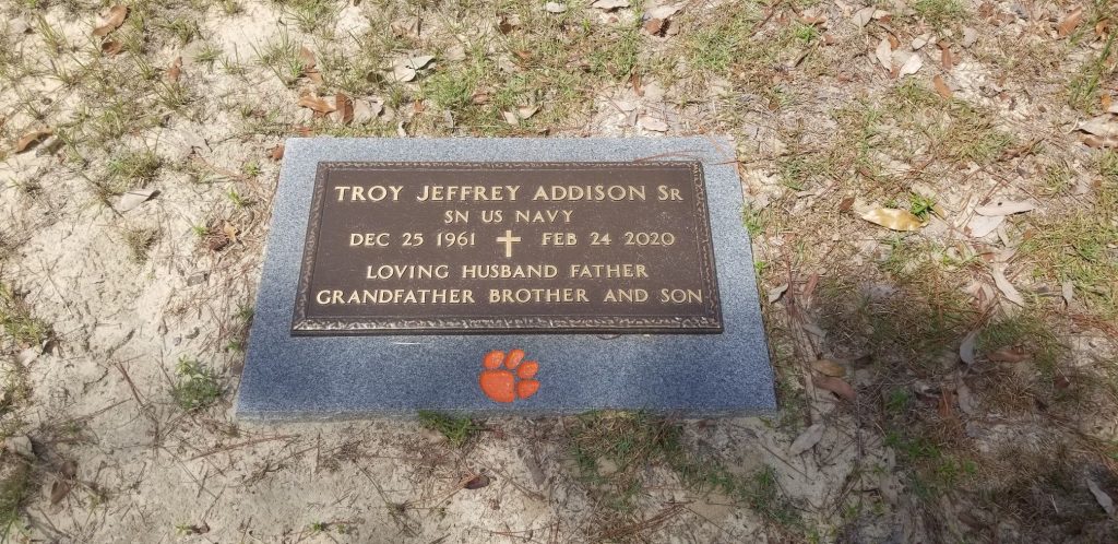 TROY JEFFREY ADDISON,SR.,58, son of Alberta Wood Addison and the late Walter Addison, Sr., was born December 25, 1961 at Kershaw County Hospital in Camden, South Carolina. He departed this earthly life on Monday, February 24, 2020 at Kershaw Health Medical Center. Troy was educated in the public schools of Kershaw County, graduating from Lugoff-Elgin High School in 1980. After high school, he enlisted in the U.S. Navy and served from 1981-1985. During his time in the Navy, he traveled to ports all around the world. After leaving the Navy, he attended Midlands Technical College, earning an associate degree in 1994 and was an honor graduate majoring in Industrial Technology& Commercial Graphics. At an early age, Troy joined Mt. Sinai AME Church. He was baptized at Brookland Baptist Church, West Columbia, South Carolina in April 1997. He served as Sunday School and Vacation Bible School teacher for teens. He also sang with the Sonrise Chorale, serving as president from 1999-2000. He also attended Calvary Chapel Lexington and Irmo. Troy served for eight years as Manager of Calvary Chapel Thrift Store, his biggest ministry. Most recently, he was employed by Charter Communications. Troy was the biggest Clemson football fan EVER! He loved to cook, especially grilling. He also loved spending time with his family, and he loved music of every genre.Those left to cherish his precious memories include: his loving wife � Monica Algood Addison of the home; his children � Troy J. Addison, Jr. of Accokeek, Maryland, Nelson Addison of Central, South Carolina and Eliot Brooke Addison of the home; his mother � Alberta Wood Addison of Elgin, South Carolina; siblings � Lawrence E. (Janice) Wood, Nellie Ruff, Yvonne Addison and Priscilla (James) Addison; grandchildren � Teyanna, Xavier, Leilah and Troy III; a host of nieces, nephews, other relatives and many sorrowing friends.
