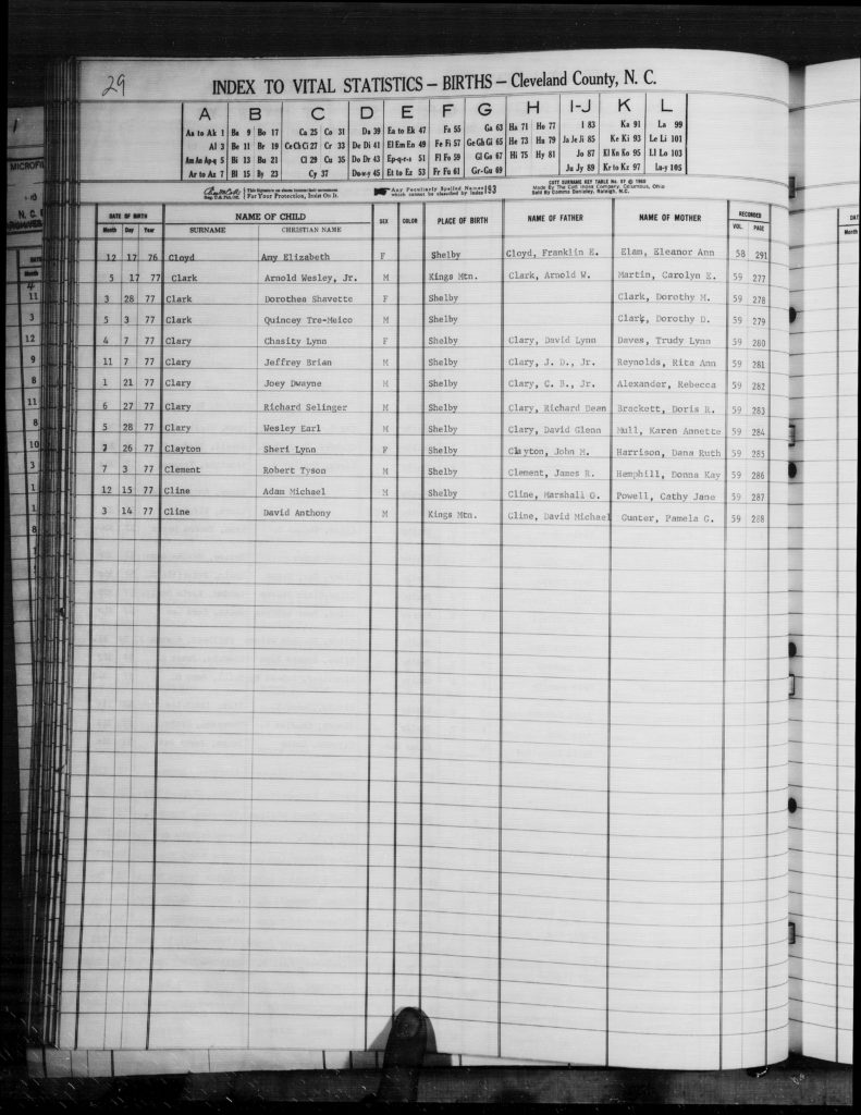 Indexes to births, marriages and deaths, Cleveland County, Index to Vital Statistics, Births and Deaths, C.026.66003, 1951-1962